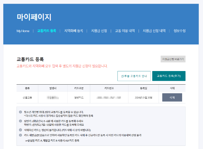 청소년 교통 지원금 신청방법