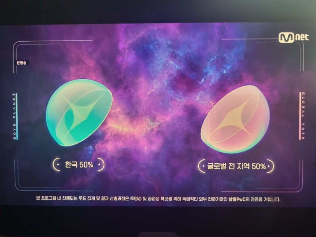 한국 50%와 글로벌 전 지역의 투표수 50%를