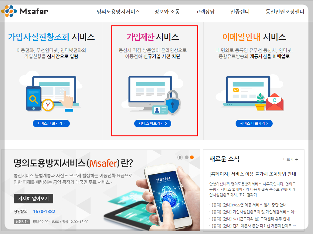 메인화면 | Msafer 명의도용방지서비스